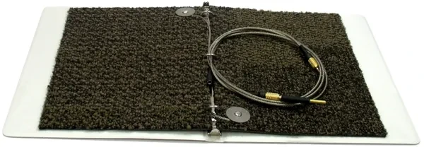 THE TRAVELER GROUNDING MAT Earthing Grounding mat is made with certified ESD carpeting manufactured specifically for business that produce sensitive electronics equipment and buildings that may have explosive gases in the area and spark remediation is very important to reduce the chances of explosions or fires or personal injury.
